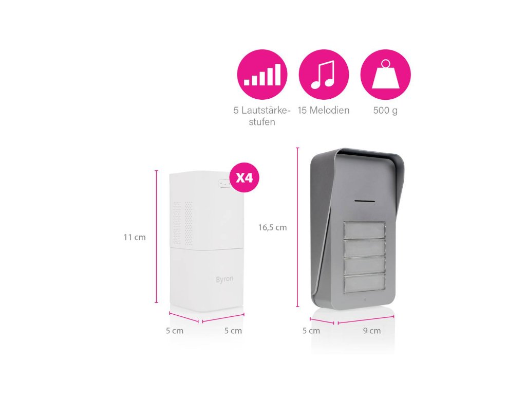 Zkontrolujte, kdo je u vašich dveří, tím, že si s ním nejprve promluvíte, s bezdrátovým audio zvonkem Byron DIC-21545. Interkom má obousměrnou audio funkci, která vám umožňuje hovořit a poslouchat vaše návštěvníky. Můžete si vybrat svou oblíbenou melodii, nastavit hlasitost a dokonce i otevřít dveře v kombinaci s elektrickým otvíračem dveří.